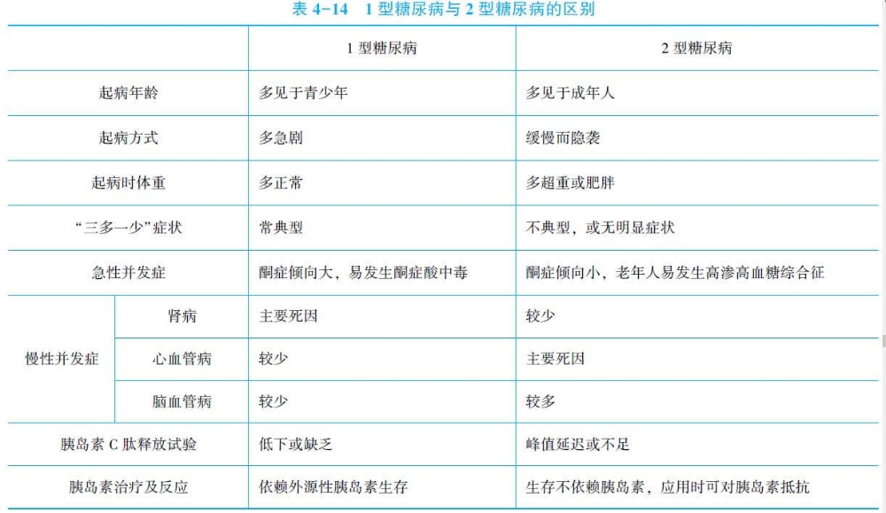 (2)2型糖尿病:以胰島素抵抗和胰島素分泌不足為主。成年人發(fā)病,多見(jiàn)于肥胖者;一般無(wú)須胰島素治療,應(yīng)激狀態(tài)下才易發(fā)生酮癥酸中毒。
