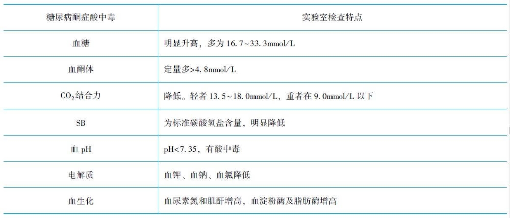 (1)誘因:1型糖尿病有自發(fā)DKA傾向;2型糖尿病常見(jiàn)誘因有:感染(最常見(jiàn))、胰島素治療不規(guī)范、各種應(yīng)激狀態(tài)、飲食不當(dāng)、某些藥物(糖皮質(zhì)激素、擬交感藥物)。
