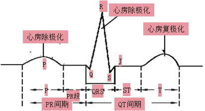 T波 心室快速?gòu)?fù)極過程時(shí)的電位變化 - 振幅:最高不超過1.5mv(不會(huì)超過3大格或15小格),最低不低于1/10R波 PR間期 心房開始去極到心室開始去極 0.12~0.20s即3~5小格 - RR間期 表示一次心動(dòng)周期的時(shí)間 0.6~1.0s(心率=60~100次/分),即寬15~25小格或者3~5大格 RR間期 ST段 心室緩慢復(fù)極過程 - ST段