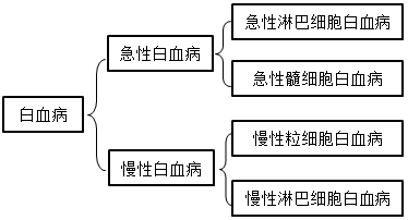 根據(jù)白血病細胞的成熟程度和自然病程,將白血病分為急性白血病和慢性白血病。