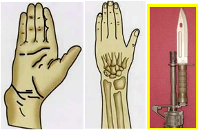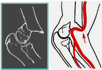 | 伸直型 | 肘部向后突出并處于半屈位 | 肘前方 |