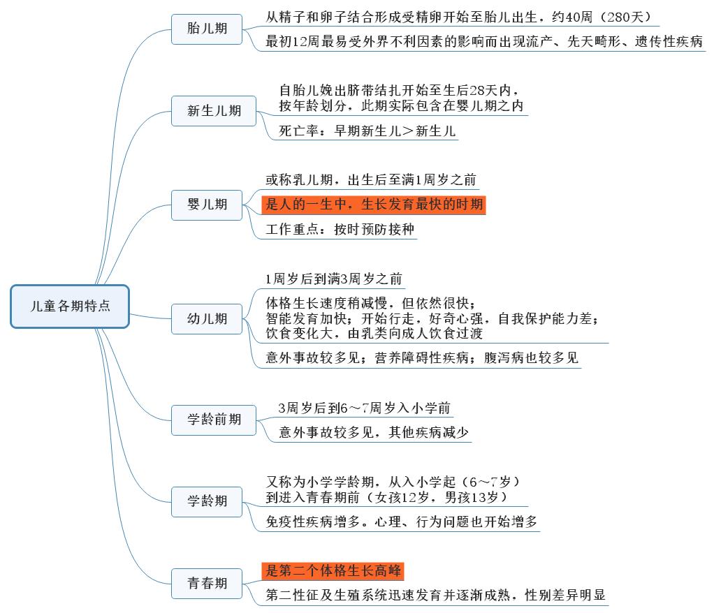 兒童各期特點思維導圖——?2021年臨床助理醫(yī)師沖刺