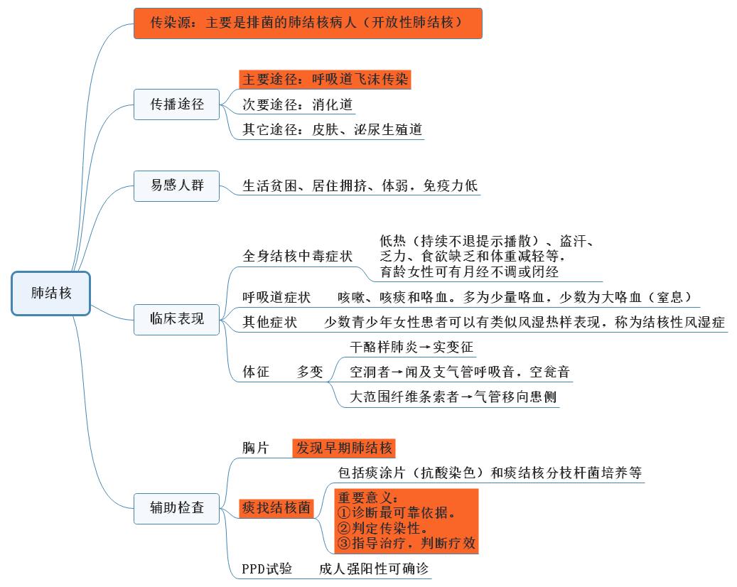 肺結(jié)核的思維導(dǎo)圖——2021年臨床助理醫(yī)師考生速記