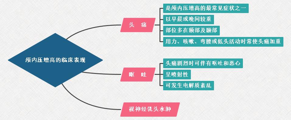 精神神經(jīng)系統(tǒng)思維導(dǎo)圖:顱內(nèi)壓增高臨床表現(xiàn)思維導(dǎo)圖