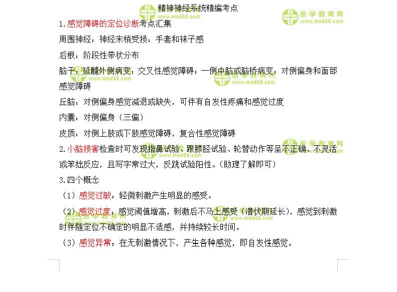 以上就是醫(yī)學(xué)教育網(wǎng)關(guān)于“臨床助理醫(yī)師綜合筆試【精神神經(jīng)系統(tǒng)】22條精華考點匯集”的相關(guān)介紹,希望能夠幫助到大家,更多資訊盡在醫(yī)學(xué)教育網(wǎng)!