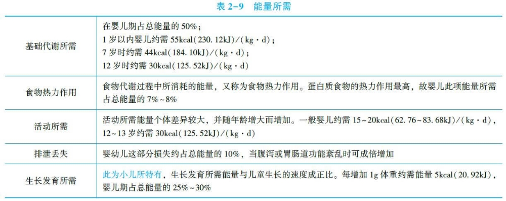 維持機(jī)體新陳代謝所必需的能量,為小兒所特有的是