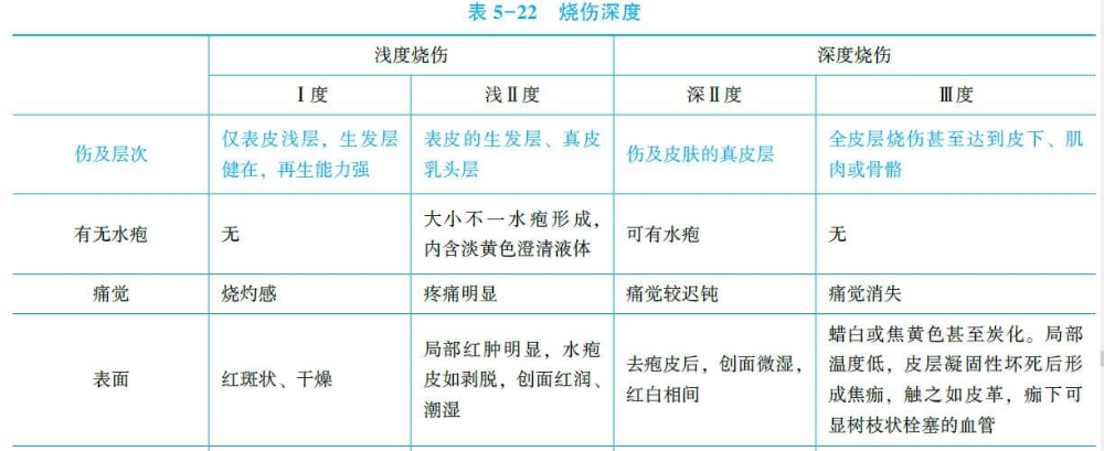 臨床助理醫(yī)師高頻考點(diǎn)表格梳理:燒傷深度的識(shí)別(三度四分法)