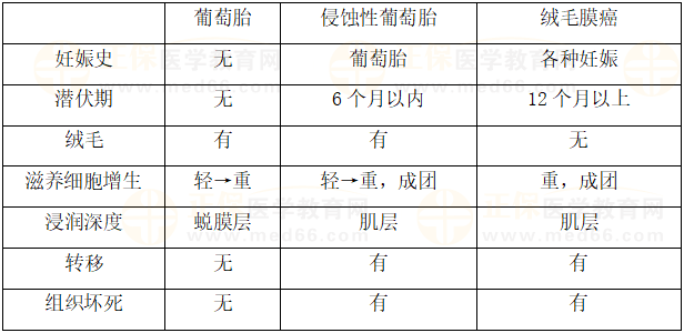 知識點(diǎn)鏈接:絨癌、侵蝕性葡萄胎、葡萄胎的鑒別