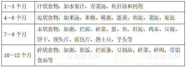 知識(shí)點(diǎn)鏈接:輔食添加順序(汁泥末碎—支離破碎)