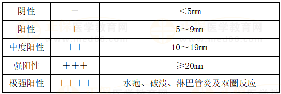 知識點鏈接:PPD結(jié)果判定(PPD皮內(nèi)注射48~72小時后觀察結(jié)果)