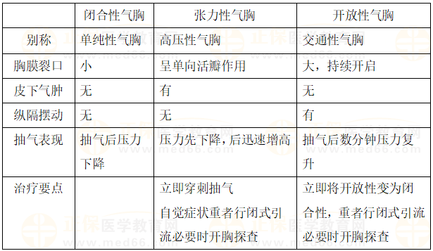 知識(shí)點(diǎn)鏈接:閉合性、張力性、開放性氣胸對(duì)比
