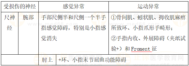 題眼:“尺神經(jīng)損傷的典型體征”、“手指內(nèi)收、外展障礙(夾紙?jiān)囼?yàn)+)和Froment征”