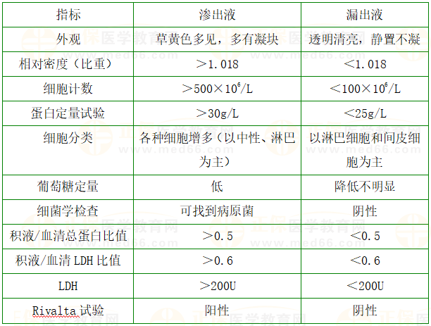 知識點11:滲出液與漏出液對比