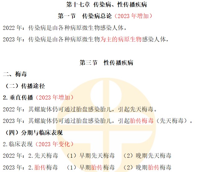 2023年臨床執(zhí)業(yè)助理醫(yī)師綜合筆試《傳染病、性傳播疾病》教材變動(dòng)
