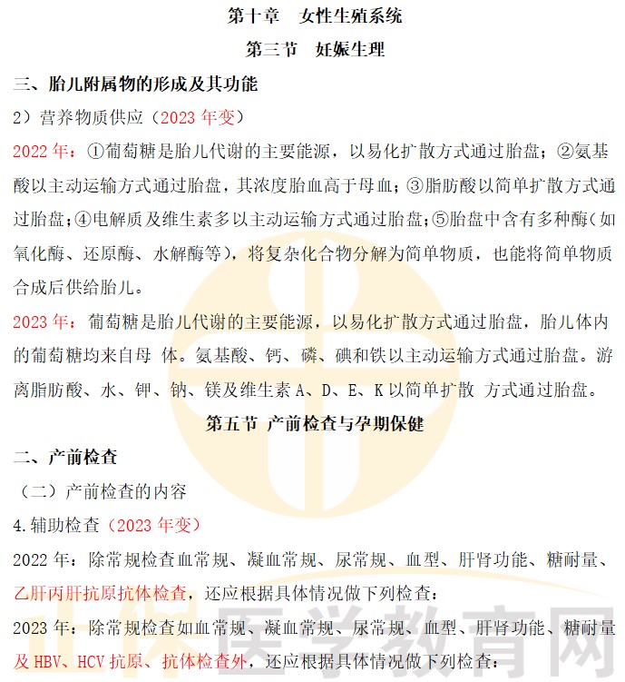 2023年臨床執(zhí)業(yè)助理醫(yī)師綜合筆試《女性生殖》教材內(nèi)容變動