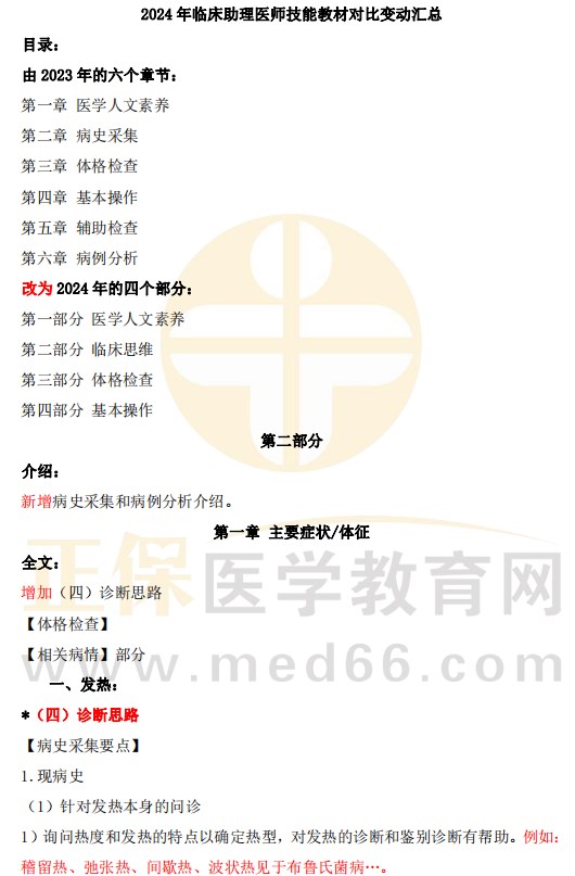 【教材變動】2024臨床助理醫(yī)師《實踐技能》教材變動詳細版