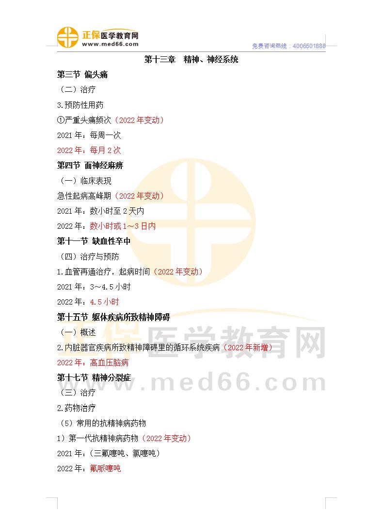 精神、神經(jīng)系統(tǒng)-臨床助理醫(yī)師教材變動(dòng)