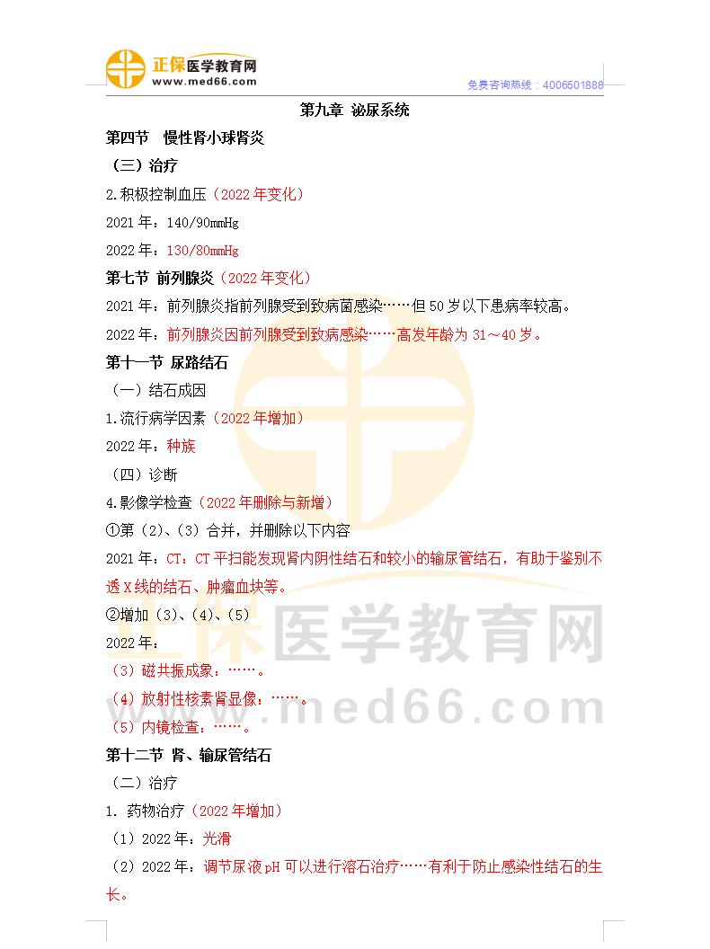 泌尿系統(tǒng)-臨床助理醫(yī)師教材變動