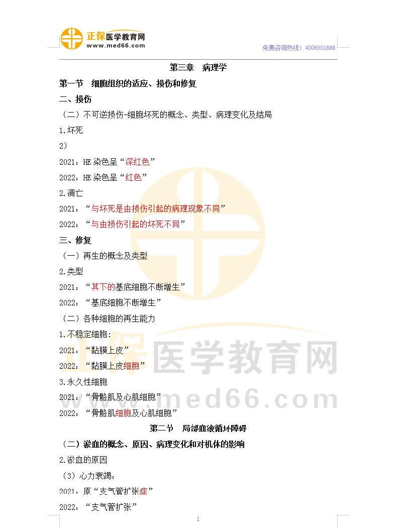 2022年臨床助理醫(yī)師醫(yī)學綜合考試《病理學》教材變動