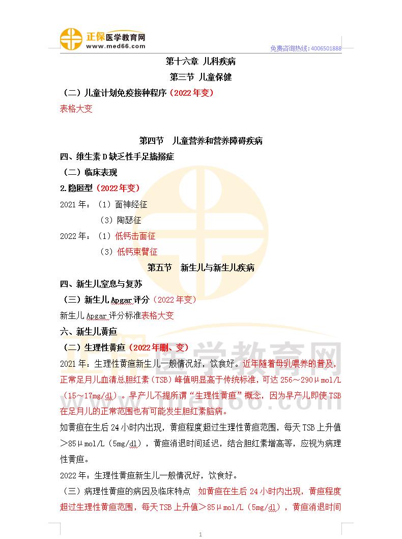 2022年臨床助理醫(yī)師《兒科疾病》官方教材現(xiàn)已公布!醫(yī)學(xué)教育網(wǎng)專業(yè)老師經(jīng)與2021年教材對比,整理了相關(guān)變動,醫(yī)學(xué)教育網(wǎng)編輯分享“2022年臨床執(zhí)業(yè)助理醫(yī)師官方教材《兒科疾病》變動內(nèi)容”如下: