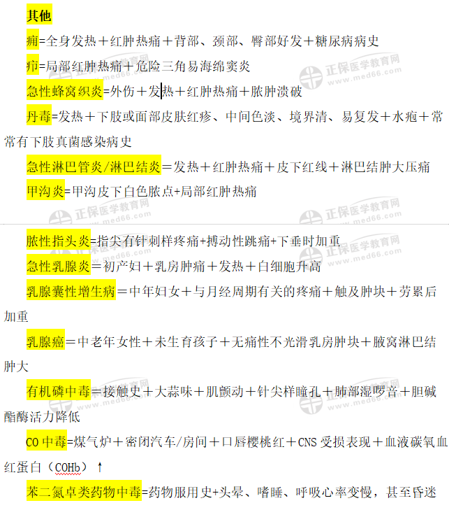 注意:診斷一定要詳細(xì),不能只寫高血壓,需要寫到幾級(jí)高血壓,危險(xiǎn)程度。同樣的,白血病也不能直接說白血病,需要區(qū)分是急淋還是急粒。有的學(xué)員會(huì)說,我看不出來診斷成什么,怎么辦?以下幫助大家總結(jié)了一些公式,希望對(duì)大家有幫助。