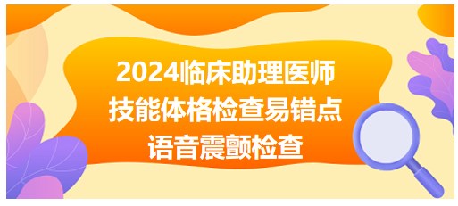 2024臨床助理醫(yī)師考生請注意!實踐技能考試備考進入倒計時,一定堅持每日備考復習加深考點記憶!正保醫(yī)學教育網(wǎng)幫考生整理了2024臨床助理醫(yī)師技能體格檢查易錯點小結(jié)-語音震顫檢查,趕快來挑戰(zhàn)!
