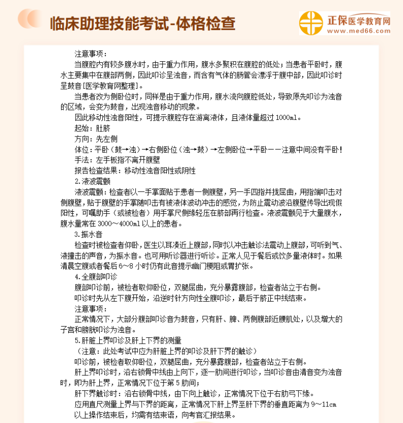 臨床助理醫(yī)師實踐技能考試體格檢查模擬題:腹部叩診!相信很多考生十分關(guān)注,醫(yī)學(xué)教育網(wǎng)編輯整理分享具體內(nèi)容如下: