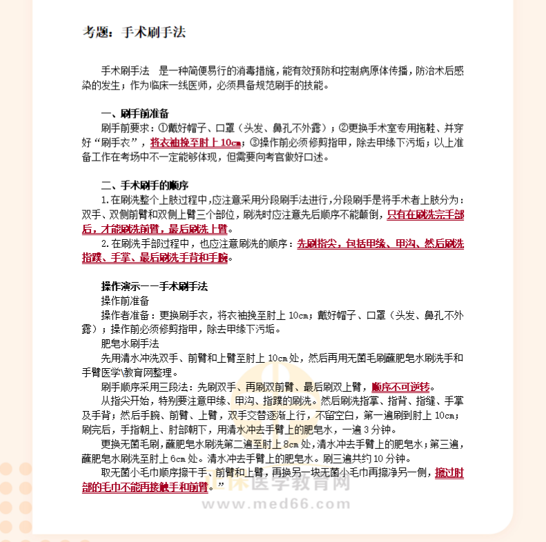 手術(shù)刷手法-臨床助理醫(yī)師實(shí)踐技能基本操作??寄M題