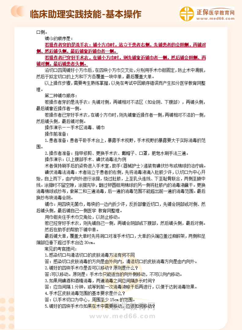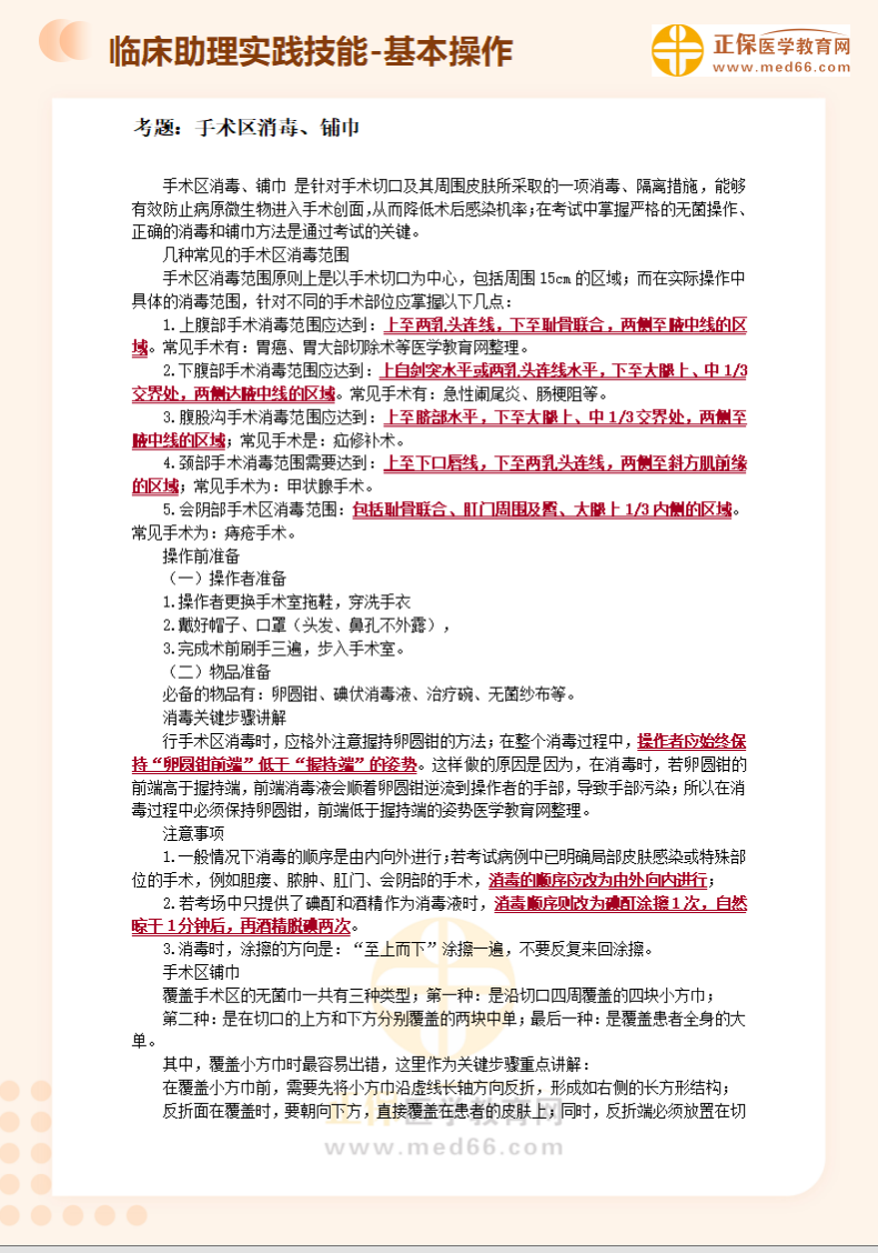 臨床助理醫(yī)師實踐技能第3考站基本操作題:手術(shù)區(qū)消毒、鋪巾!醫(yī)學(xué)教育網(wǎng)編輯整理分享如下內(nèi)容,希望可以幫助大家更好地掌握相關(guān)重點!