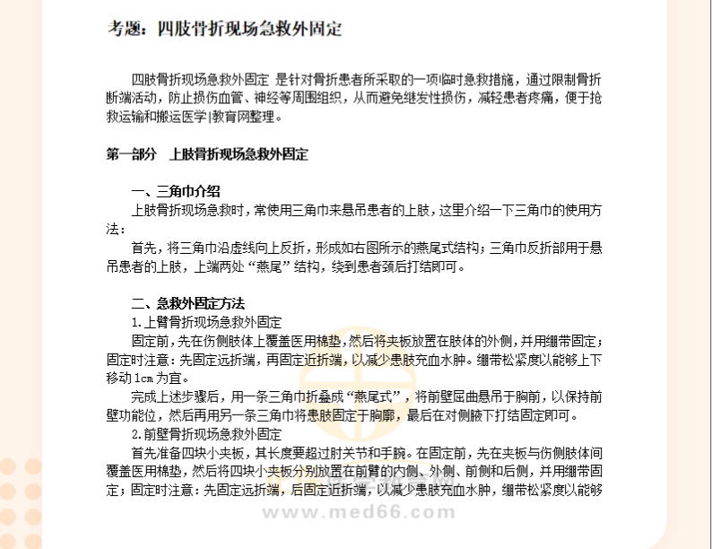 四肢骨折現(xiàn)場(chǎng)急救外固定-臨床助理醫(yī)師技能考試基本操作題