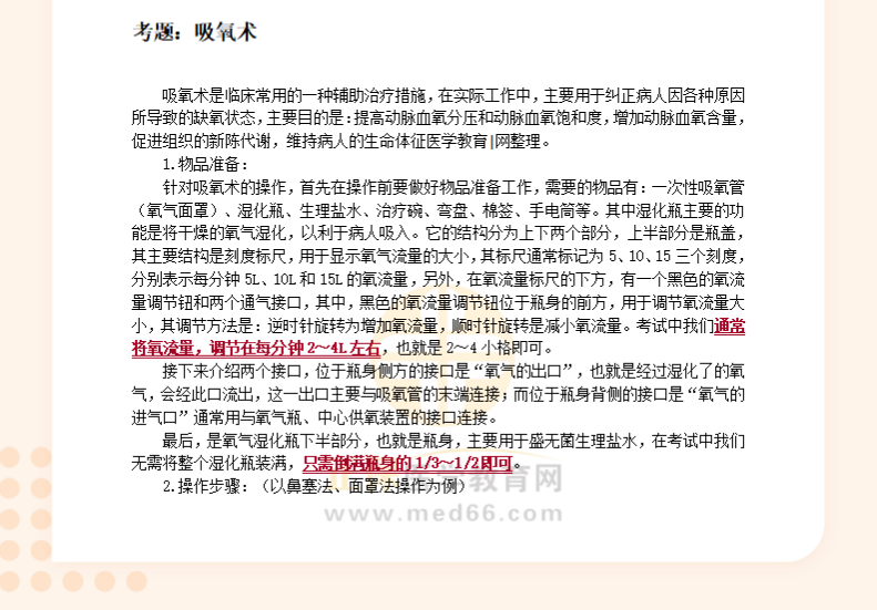 吸氧術(shù)——臨床助理醫(yī)師實(shí)踐技能考試【第3站基本操作】習(xí)題!醫(yī)學(xué)教育網(wǎng)編輯整理分享如下內(nèi)容,希望可以幫助大家更好地掌握相關(guān)重點(diǎn)!