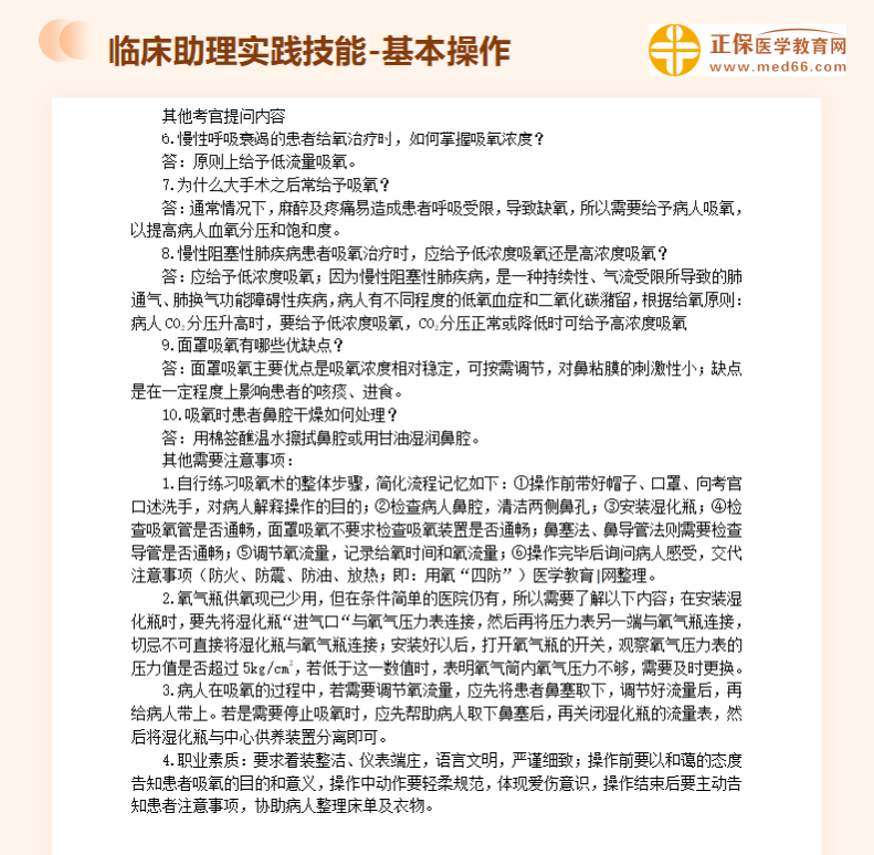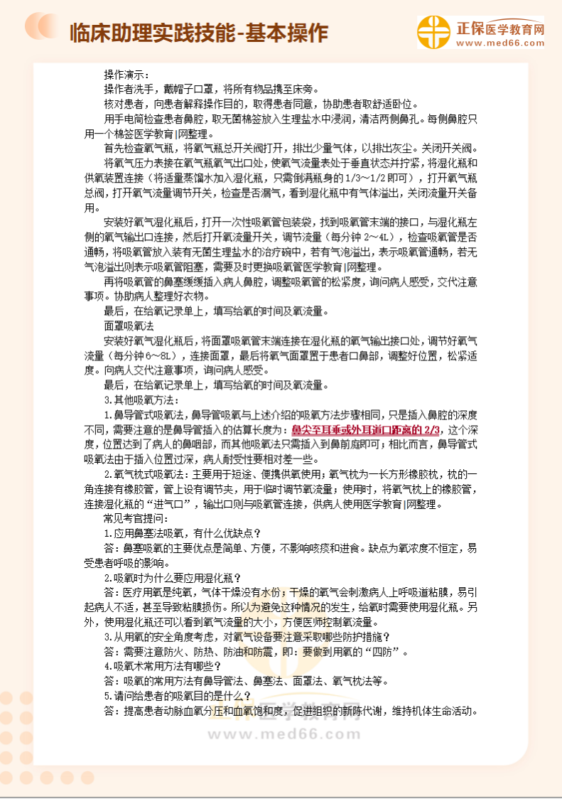 吸氧術(shù)——臨床助理醫(yī)師實(shí)踐技能考試【第3站基本操作】習(xí)題