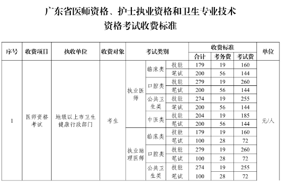 廣東省關(guān)于2020醫(yī)師、護(hù)士執(zhí)業(yè)資格和衛(wèi)生專業(yè)技術(shù)資格考試收費(fèi)標(biāo)準(zhǔn)的通知