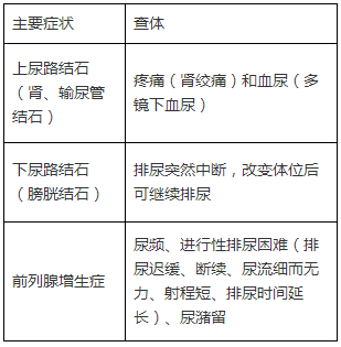 上尿路結石、下尿路結石與前列腺增生癥的臨床表現(xiàn)鑒別