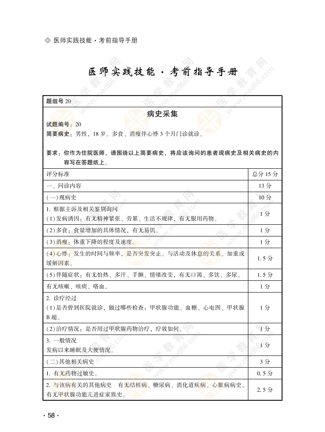 【臨床病史采集20號習(xí)題】男性,18歲。多食、消瘦伴心悸3個月門診就診!具體內(nèi)容醫(yī)學(xué)教育網(wǎng)編輯整理分享如下,希望對正在備戰(zhàn)2022年醫(yī)師實踐技能考試的考生有所幫助!