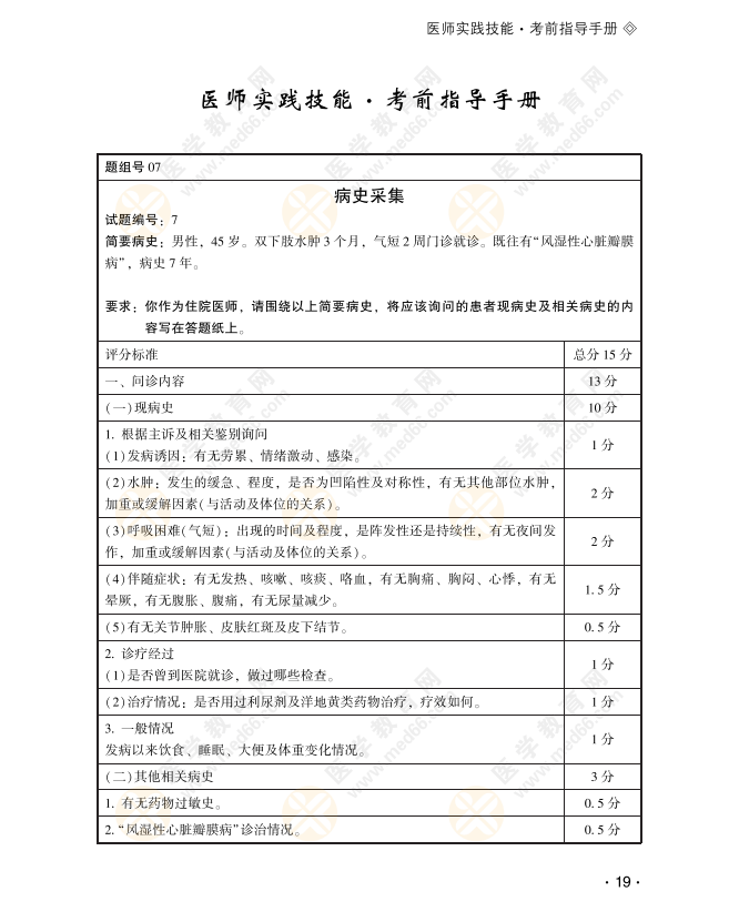 2022年臨床醫(yī)師資格實(shí)踐技能【第一站病史采集】7號(hào)精選題