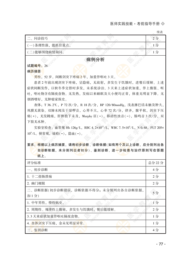 男性,52歲。間斷劍突下疼痛2年-臨床技能病例分析26號(hào)習(xí)題!具體內(nèi)容醫(yī)學(xué)教育網(wǎng)編輯整理分享如下,希望對(duì)正在備戰(zhàn)2022年醫(yī)師實(shí)踐技能考試的考生有所幫助!