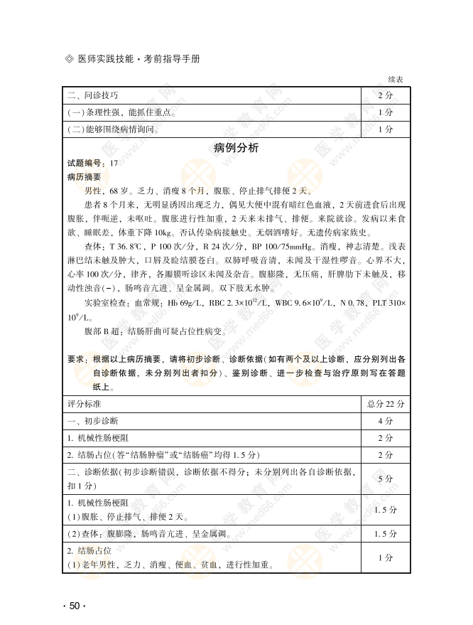 以下甄選病例分析題節(jié)選自《2022年臨床技能考前指導手冊》!