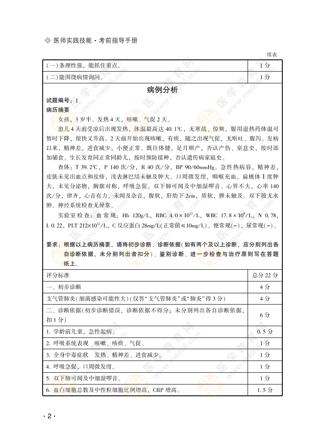 以下甄選病例分析題節(jié)選自《2022年臨床技能考前指導手冊》!