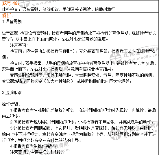1.敲黑板:根據(jù)收集到的題目可知,多數(shù)地區(qū)取消了考官提問,而之前考查三個體格檢查改為考查四個體格檢查,從而可以看出現(xiàn)在對于體格檢查和操作類更為重視。