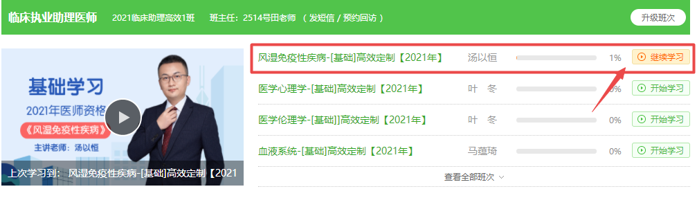 湯神新一年初見面!2021年臨床助理醫(yī)師《風(fēng)濕免疫性疾病》基礎(chǔ)班新課更新!已購課同學(xué)可以直接進入我的網(wǎng)校我的家-我的課程-風(fēng)濕免疫性疾病科目進行學(xué)習(xí)!2021年臨床助理風(fēng)濕免疫性疾病考試大綱無變動,2021年新教材有部分變動。具體內(nèi)容下方查看。未購課學(xué)員點擊此處進入選擇,具體看課位置如下: