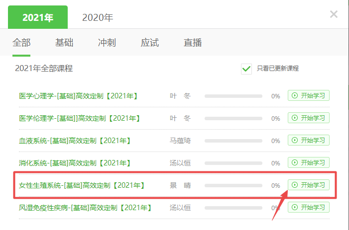 21年已付費(fèi)學(xué)員《女性生殖系統(tǒng)》看課位置