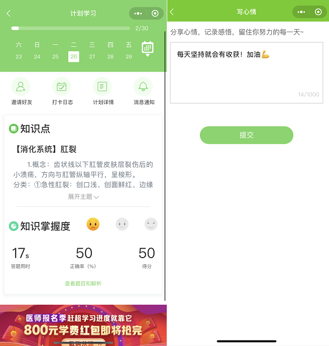 還等什么?加入“醫(yī)考愛打卡”,和所有醫(yī)考人一起奮戰(zhàn)吧!學(xué)習(xí)是一種習(xí)慣,讓好習(xí)慣從今天開始!