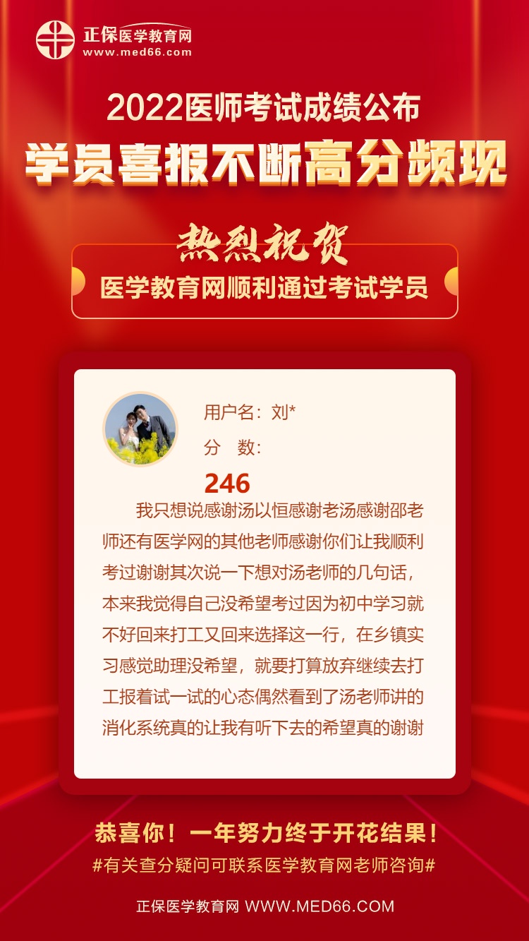 - · 【喜報(bào)!臨床助理醫(yī)師考生256分】醫(yī)學(xué)教育網(wǎng)yyds!