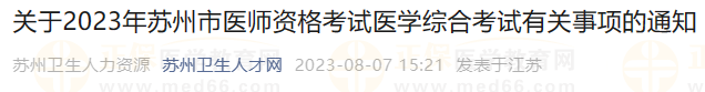 江蘇蘇州2023臨床助理醫(yī)師筆試考場(chǎng)及考前須知已公布!江蘇蘇州考點(diǎn)發(fā)布2023年全國(guó)醫(yī)師資格考試醫(yī)學(xué)綜合考試有關(guān)事項(xiàng)的通知,請(qǐng)考生做好考前準(zhǔn)備工作: