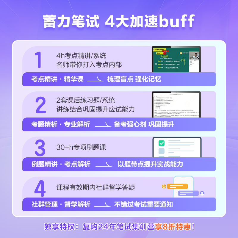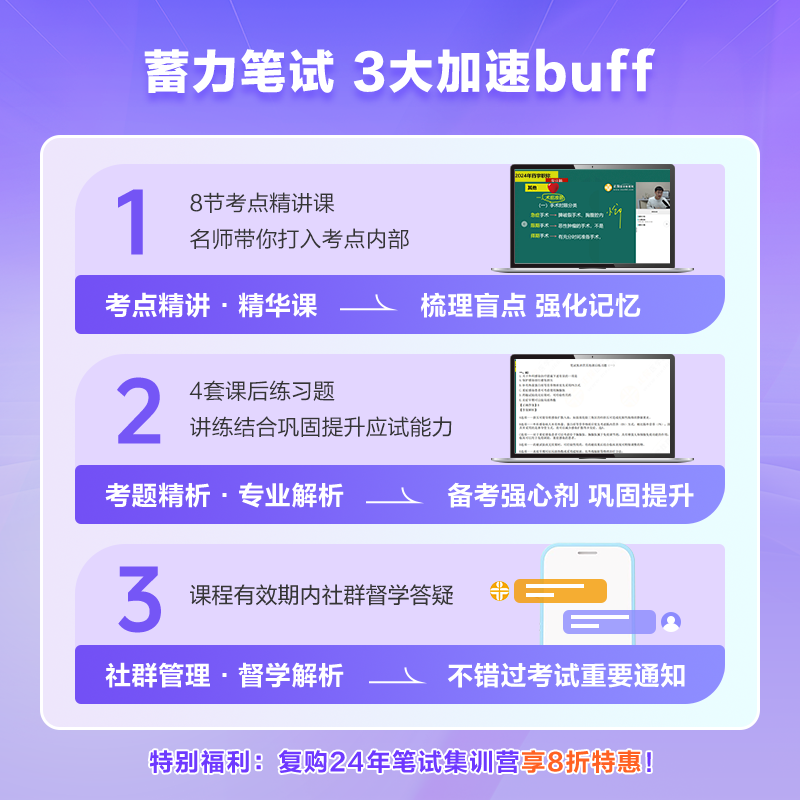 更有獨(dú)享特權(quán):復(fù)購2024臨床筆試集訓(xùn)營8折優(yōu)惠!