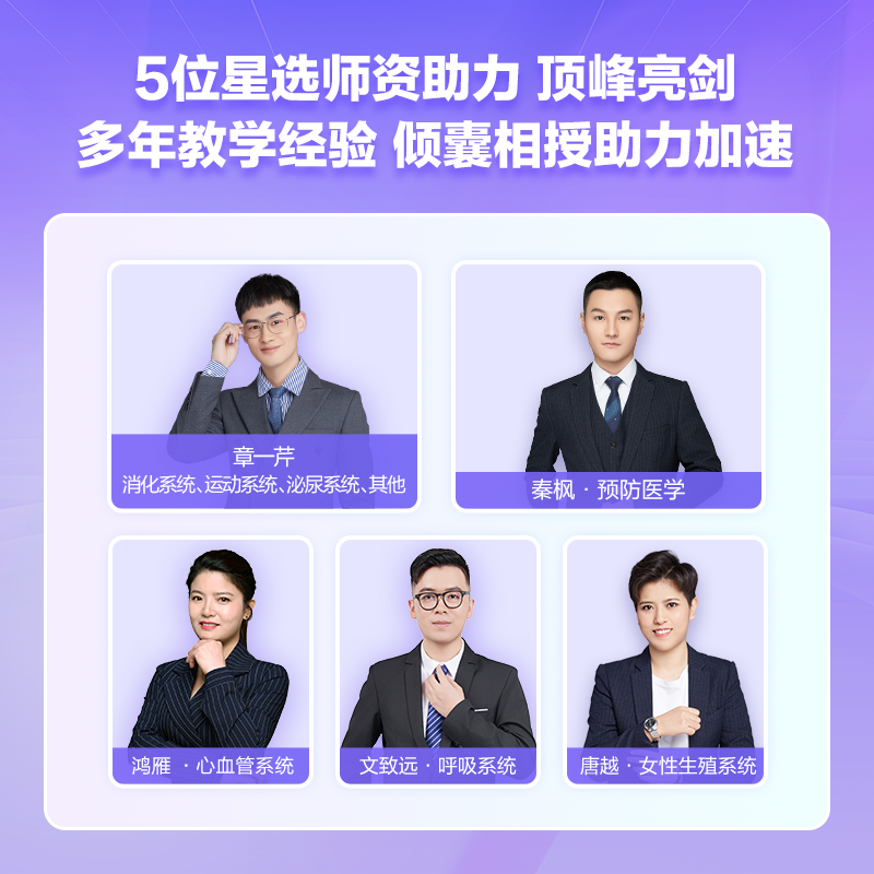 我們深知,把握住每一個(gè)考點(diǎn),就如同握住了一把開啟成功之門的鑰匙,因此,我們的「臨床考點(diǎn)集訓(xùn)課」緊貼最新大綱,由臨床醫(yī)師人氣講師章一芹、鴻雁、唐越、秦楓、文致遠(yuǎn)親授核心系統(tǒng)考點(diǎn)!