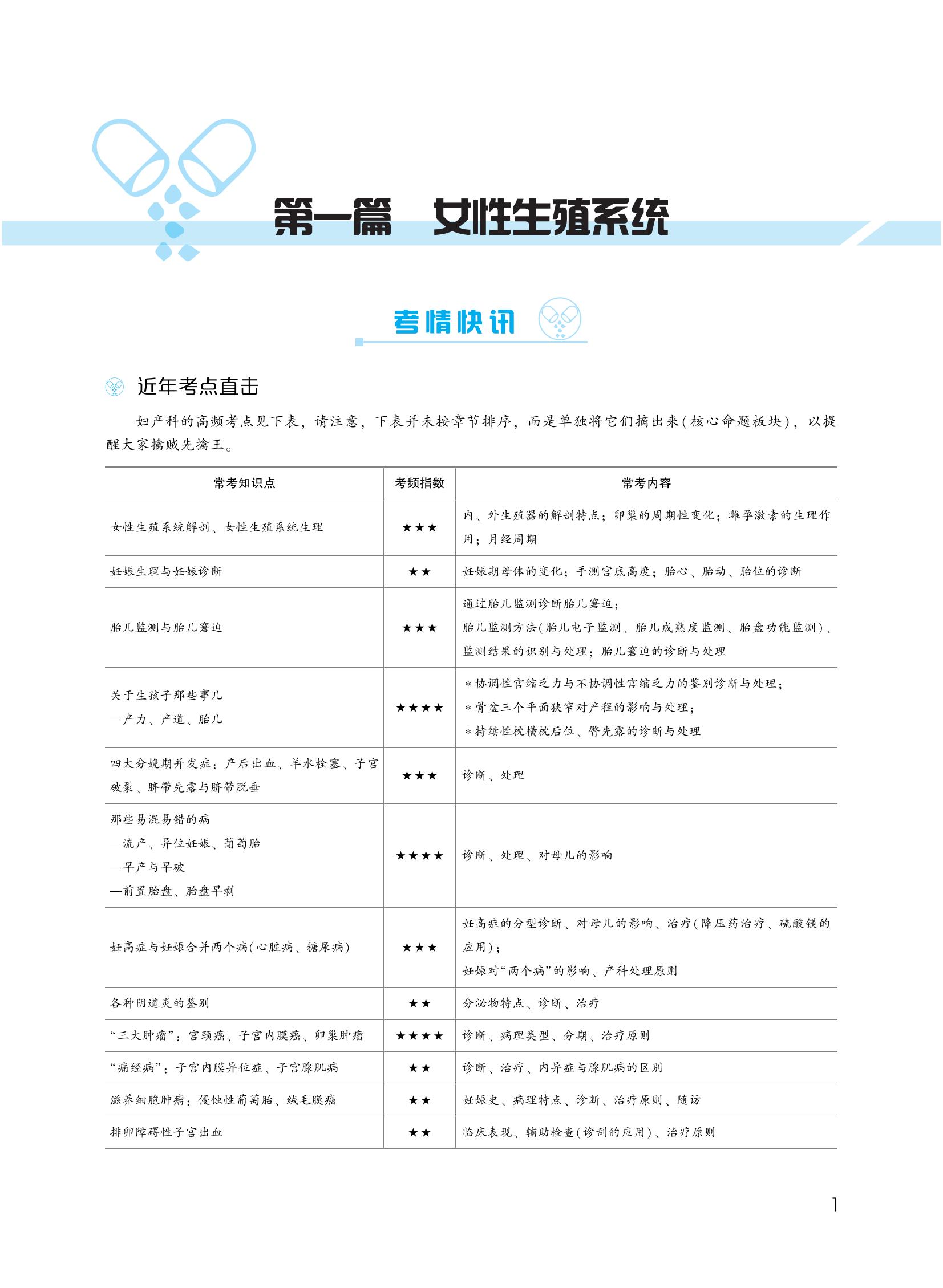 本書包含《女性生殖系統(tǒng)》和《兒科疾病》兩個(gè)考試科目,按照大綱順序以章節(jié)編寫,系統(tǒng)全面的同時(shí)突出考點(diǎn)、突顯重點(diǎn)、突破難點(diǎn)。用雙色印刷突出考點(diǎn)、用“敲黑板”欄目突出重點(diǎn)、用示意圖來進(jìn)行難點(diǎn)剖析。新版圖書還添加了增值服務(wù),包含思維導(dǎo)圖(婦兒—二大系統(tǒng))以及24小時(shí)不限次答疑等“硬核”服務(wù),趕快入手為筆試備考做好準(zhǔn)備!