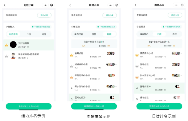 全新上線“團(tuán)隊(duì)作戰(zhàn)”??梢砸詧F(tuán)長(zhǎng)的名義開(kāi)團(tuán), 拉起你的醫(yī)學(xué)小伙伴,組建一支夢(mèng)之隊(duì),在備考的路上一起沖鴨!一下子勝負(fù)欲壓不住了~