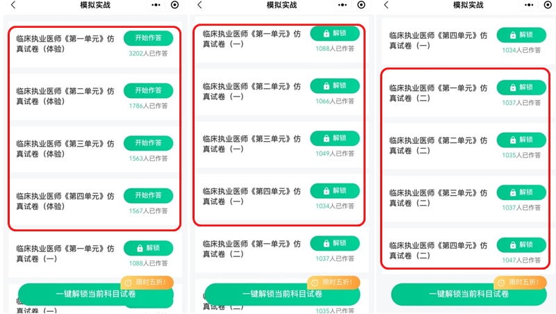 試卷(二)需付費(fèi)解鎖,助理兩個(gè)單元合計(jì)300題;
